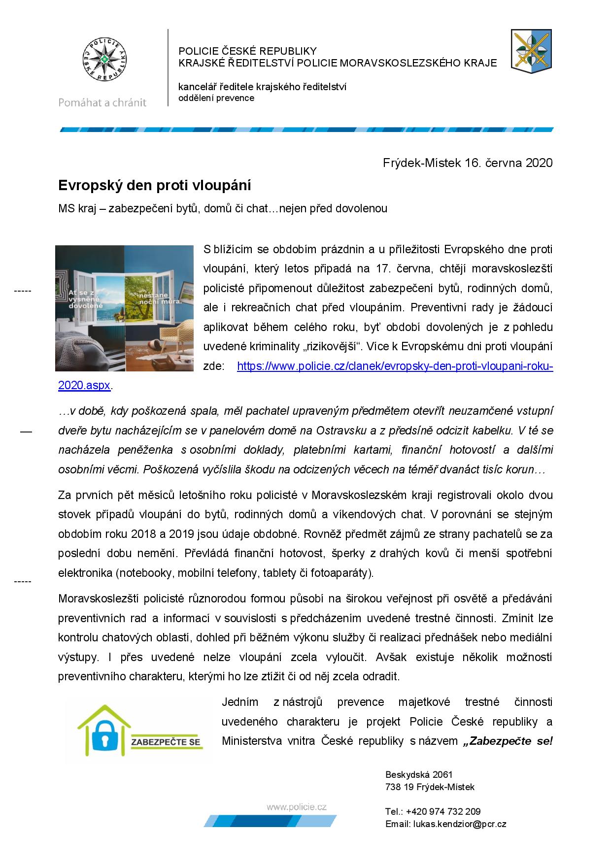 17. června 2020 - Evropský den proti vloupání