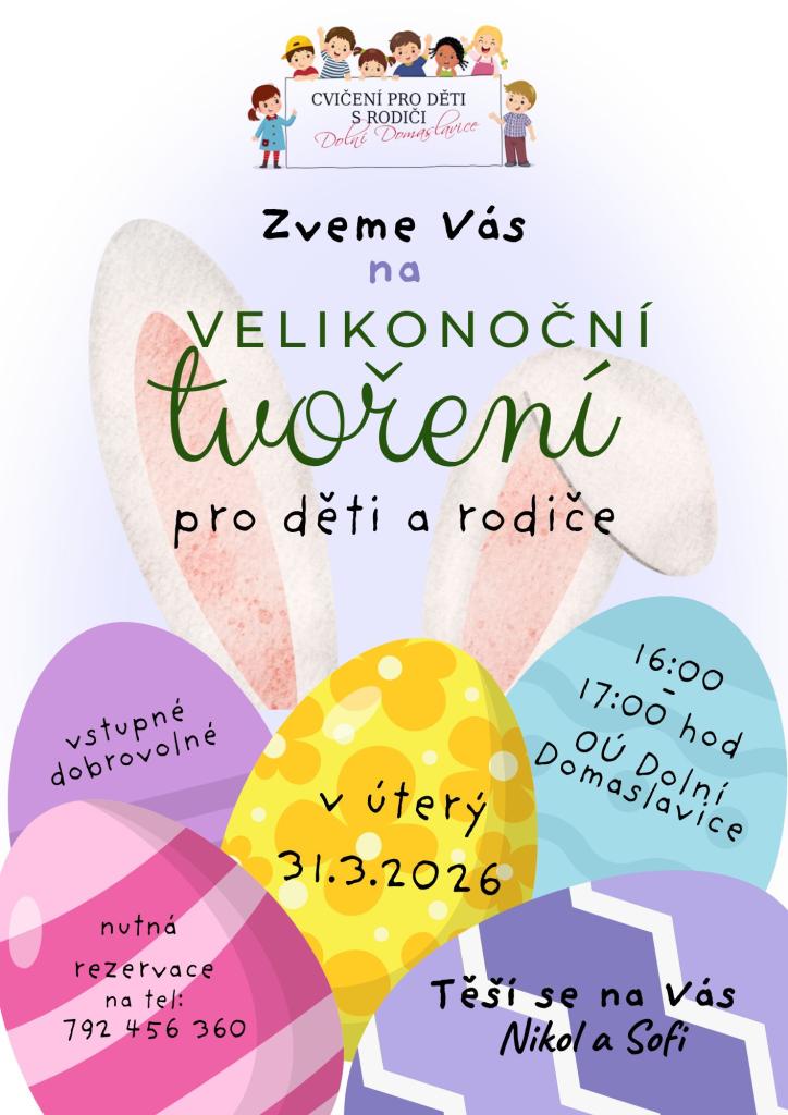 Zveme všechny děti a jejich rodiče na Velikonoční tvoření, které se koná na obecním úřadě v přízemí budovy.